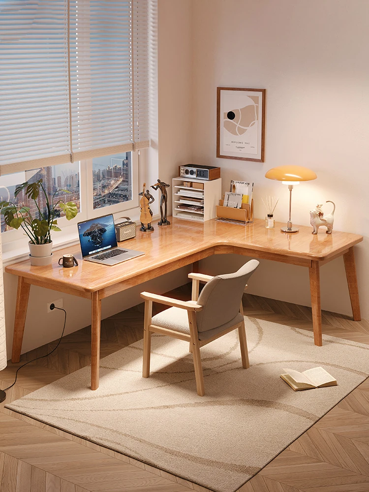 高級感漂う実木製書斎デスク - モダンなL字型オフィスデスク、家庭用作業台、シンプルな2人用学習デスク。快適な作業空間を提供し、スタイリッシュなインテリアを演出します!
