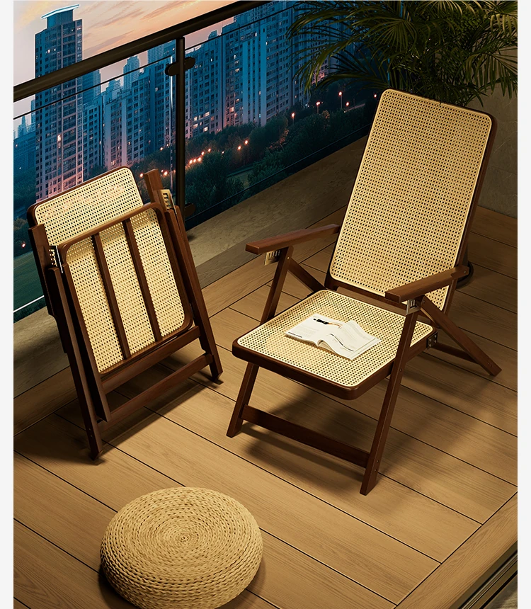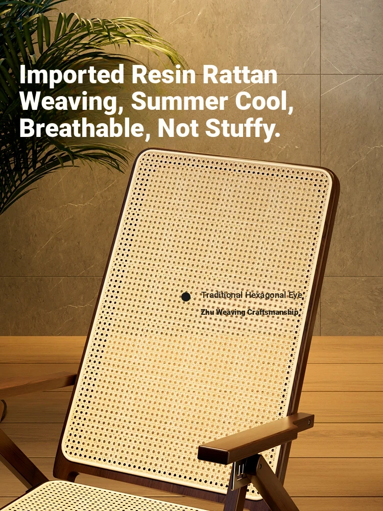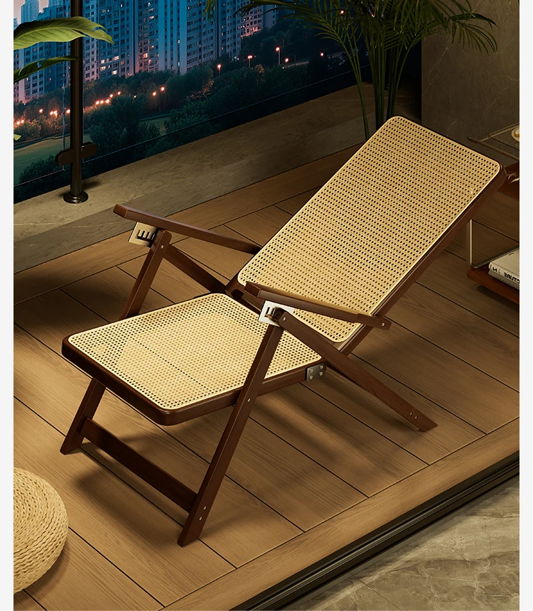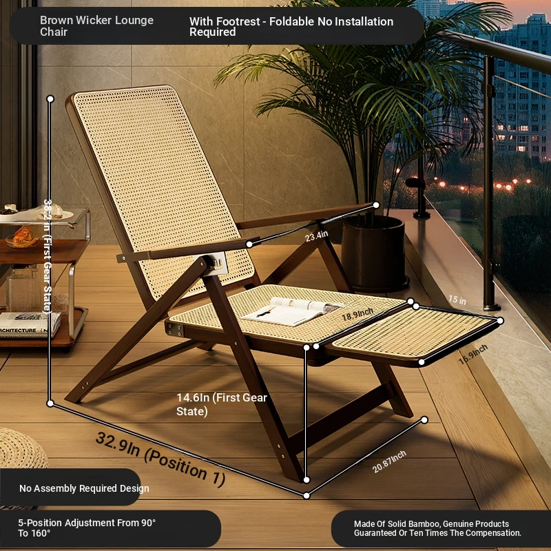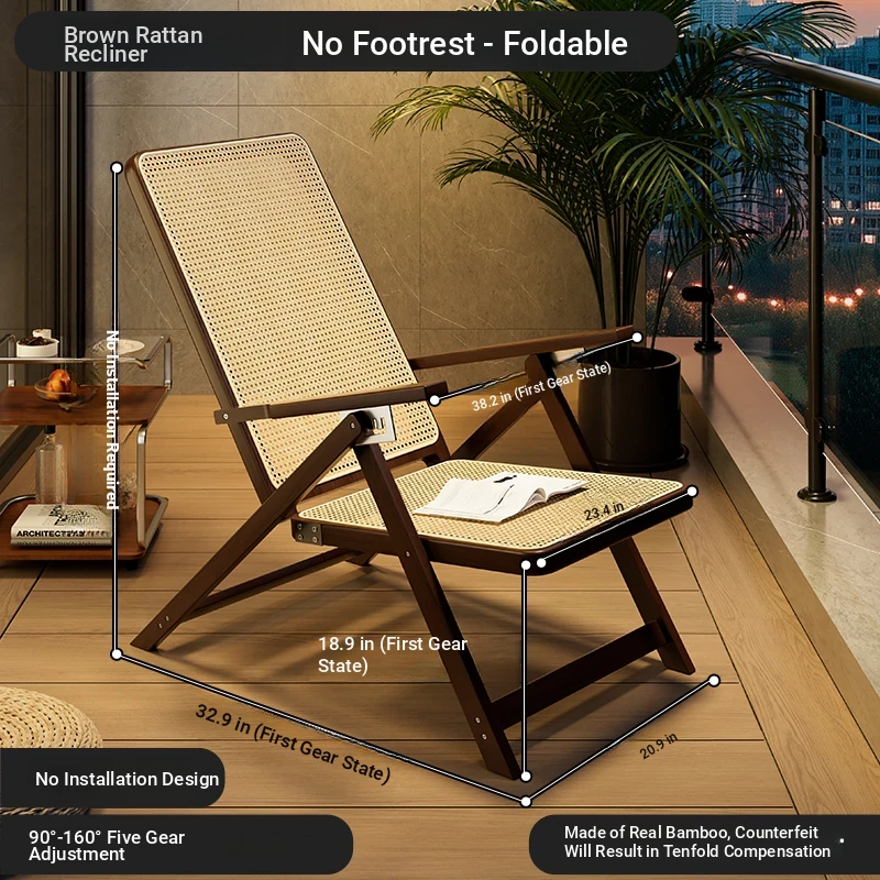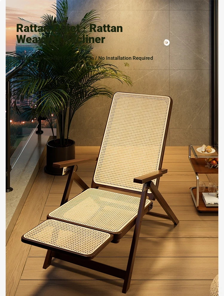 Tea rattan recliner [with footrest-Foldable installation free]]
