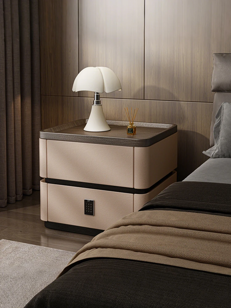 高級感溢れる実木製ベッドサイドテーブル!暗証番号ロック付きのセキュリティボックスで安心!2025年のトレンドアイテム、スタイリッシュな寝室収納に最適なサイドキャビネット!
