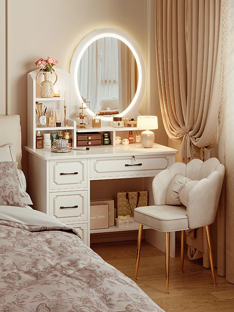 2025年新款!モダンなベッドルームにぴったりのシンプルなフレンチスタイル化粧台。収納力抜群のミラー付きドレッサーで、小さな部屋でもスッキリと魅力的に!