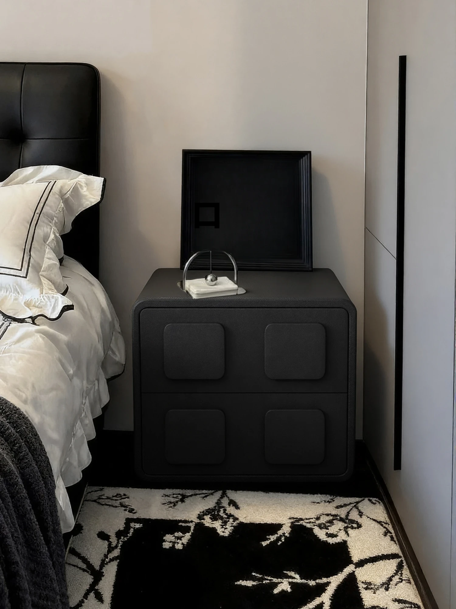 2025年新作!高級感溢れるクリーム風の実木製ブラックナイトスタンド。コンパクトでおしゃれなベッドサイドキャビネット、あなたの寝室に洗練された収納を提供します!