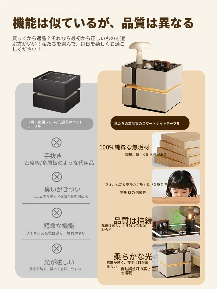 2025年新作!高級感溢れるスマートナイトスタンド - おしゃれで機能的なデザイン、木製の多機能ベッドサイドキャビネット。あなたの寝室に特別な魅力をプラス!