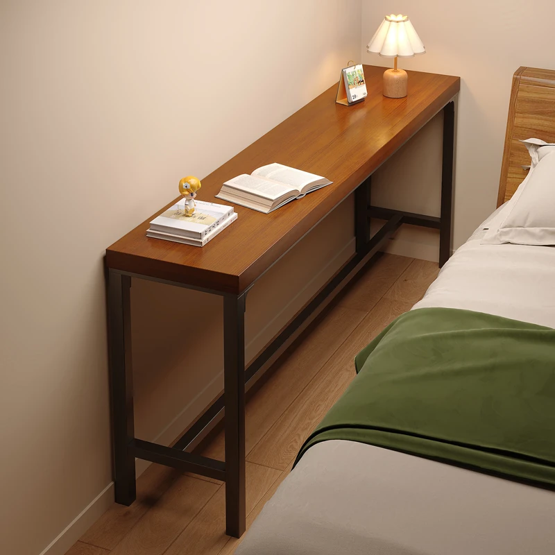 ベッドサイドスリムテーブル - スリムなデザインで省スペース、ソファの後ろやベッドの足元に最適!作業やパソコン利用に便利なロング型デスク。おしゃれで機能的な収納を実現します!