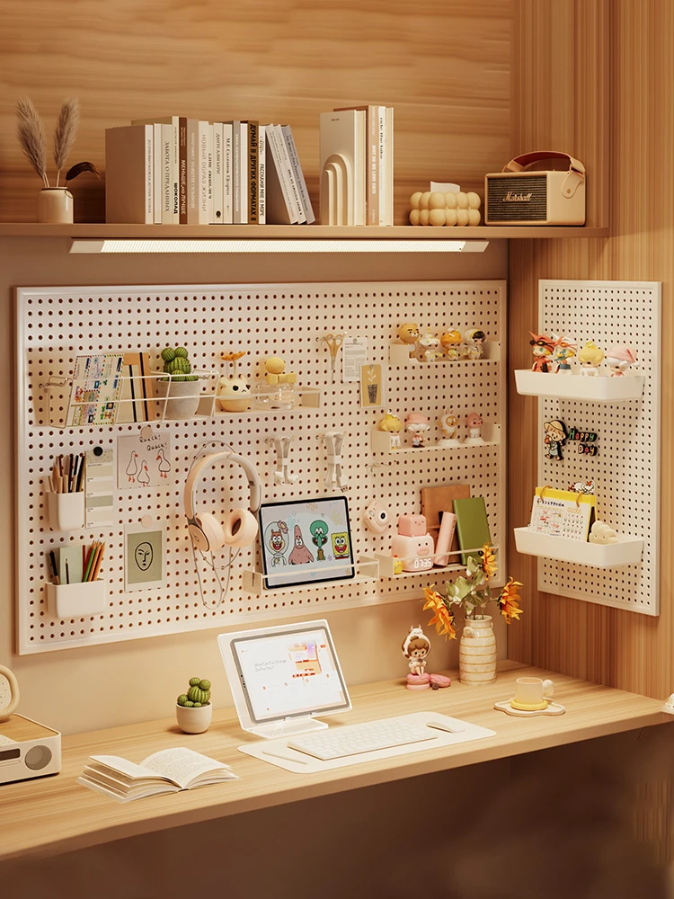 女子向け学習デスク 金属製パネル付き収納ラック 壁掛けディスプレイシェルフ おしゃれで実用的な雑貨収納に最適!部屋をスッキリ整理して、勉強や趣味をもっと楽しもう!
