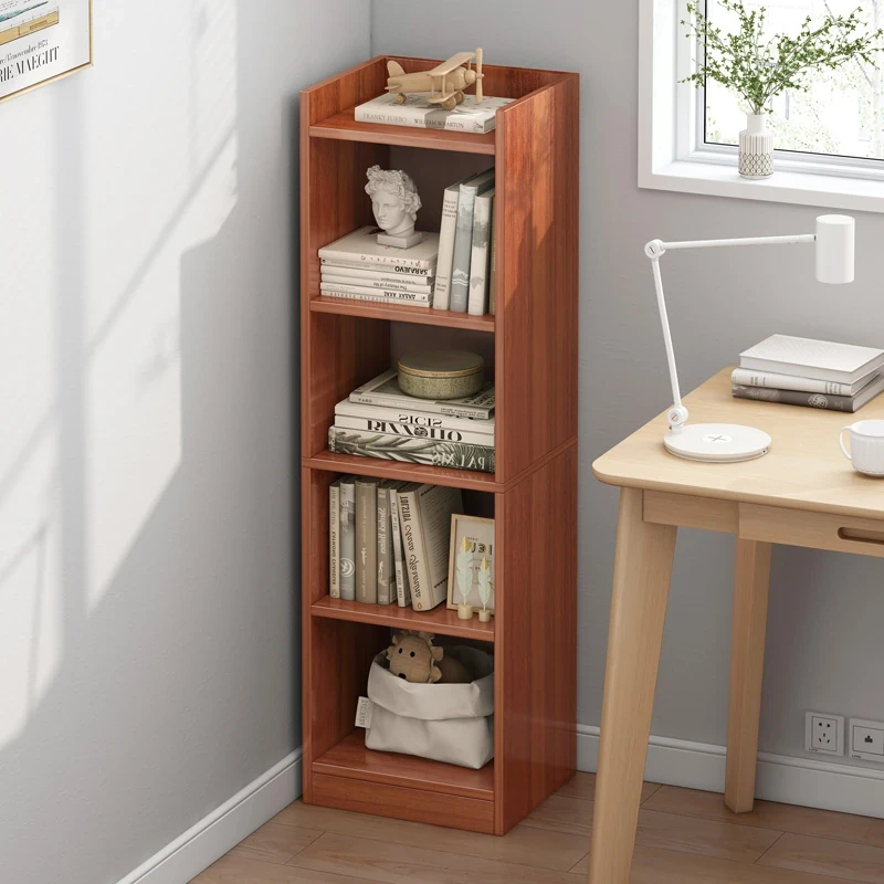 リビングや書斎にぴったり!スタイリッシュな木製コーナー書棚 - スリムなデザインで省スペースを実現!本や小物をすっきり収納できるフロアスタンド型収納ラックです。