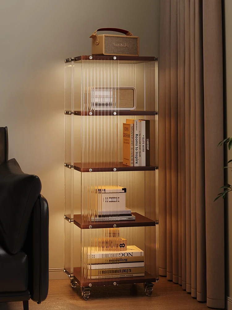 デザイン性抜群のアクリル製移動式木製ナイトテーブル!ユニークなスタイルが魅力の子供部屋や寝室にぴったりの収納ラック。おしゃれで機能的なスペースを作り出します!