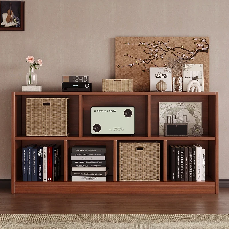 天然木の色合いの本棚&収納ラック - オフィスに最適なフロアスタンドタイプの全開放型名誉展示キャビネットと書類収納棚が一体化。壁にぴったりフィットし、スッキリとした空間を演出します!