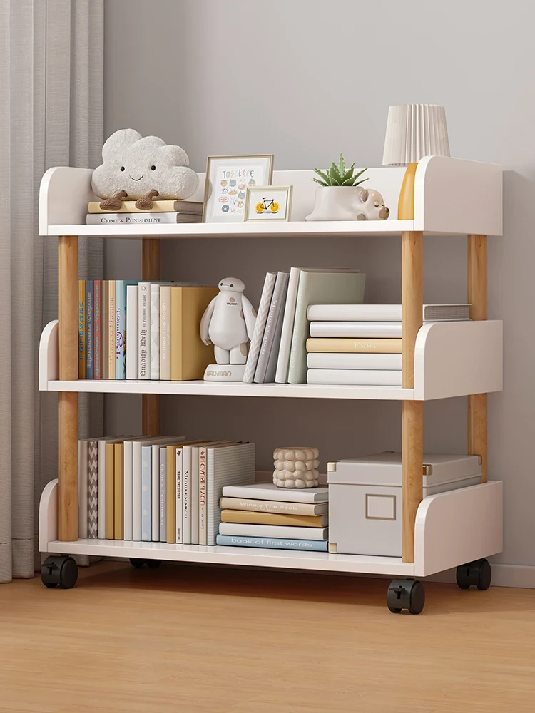 壁に寄せられる移動式書棚、キャスター付きのシンプルなフロア収納ラック!多層展示でお菓子やおもちゃを可愛く整理できる小型シェルフ。お部屋をオシャレに彩る便利アイテム!