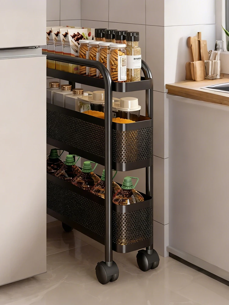 家庭用スリム収納ラック - 狭いスペースにぴったりな多層収納キャビネット!キッチンで簡単に引き出せる移動式メタルカート。整理整頓が楽々、使い勝手抜群!